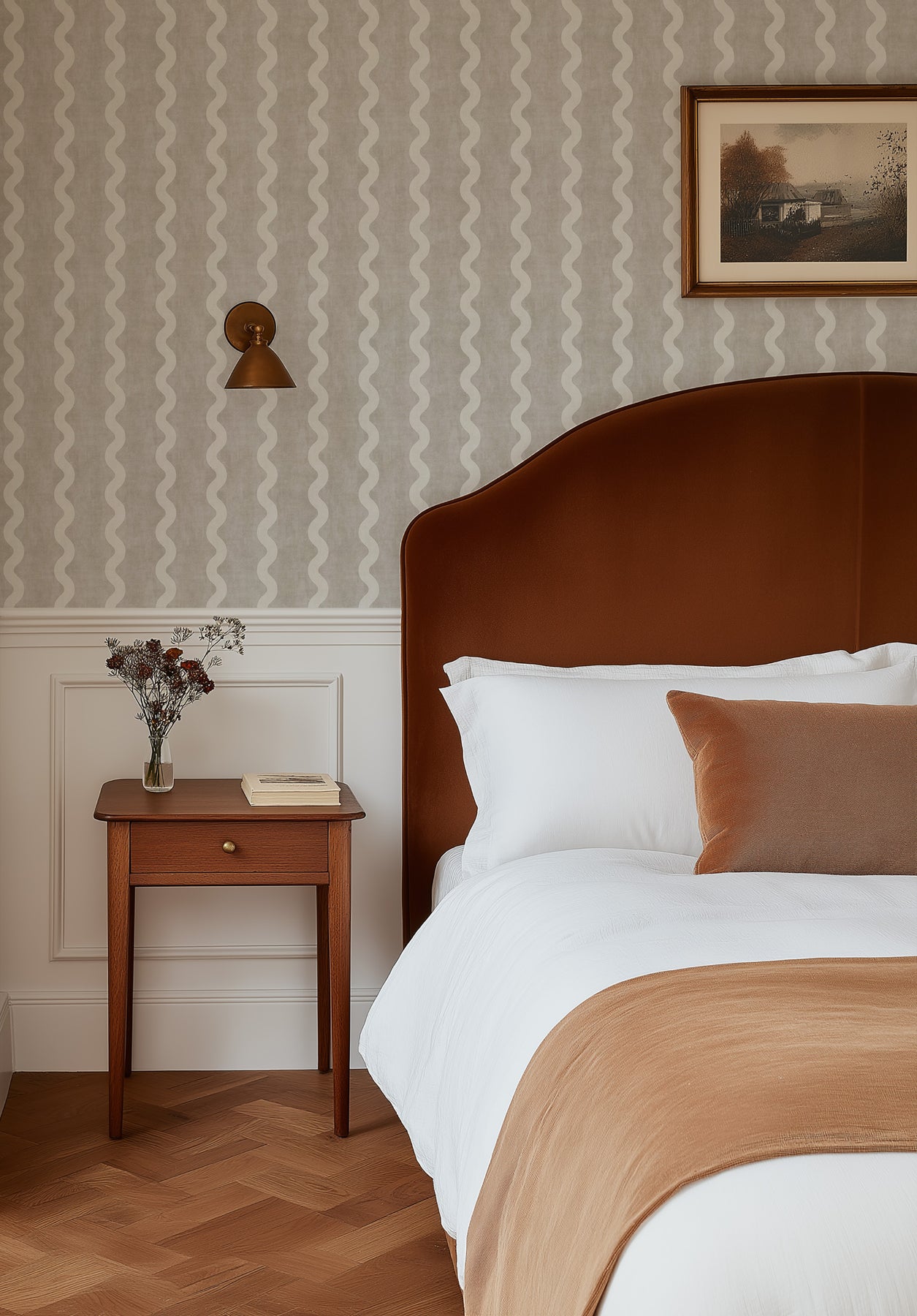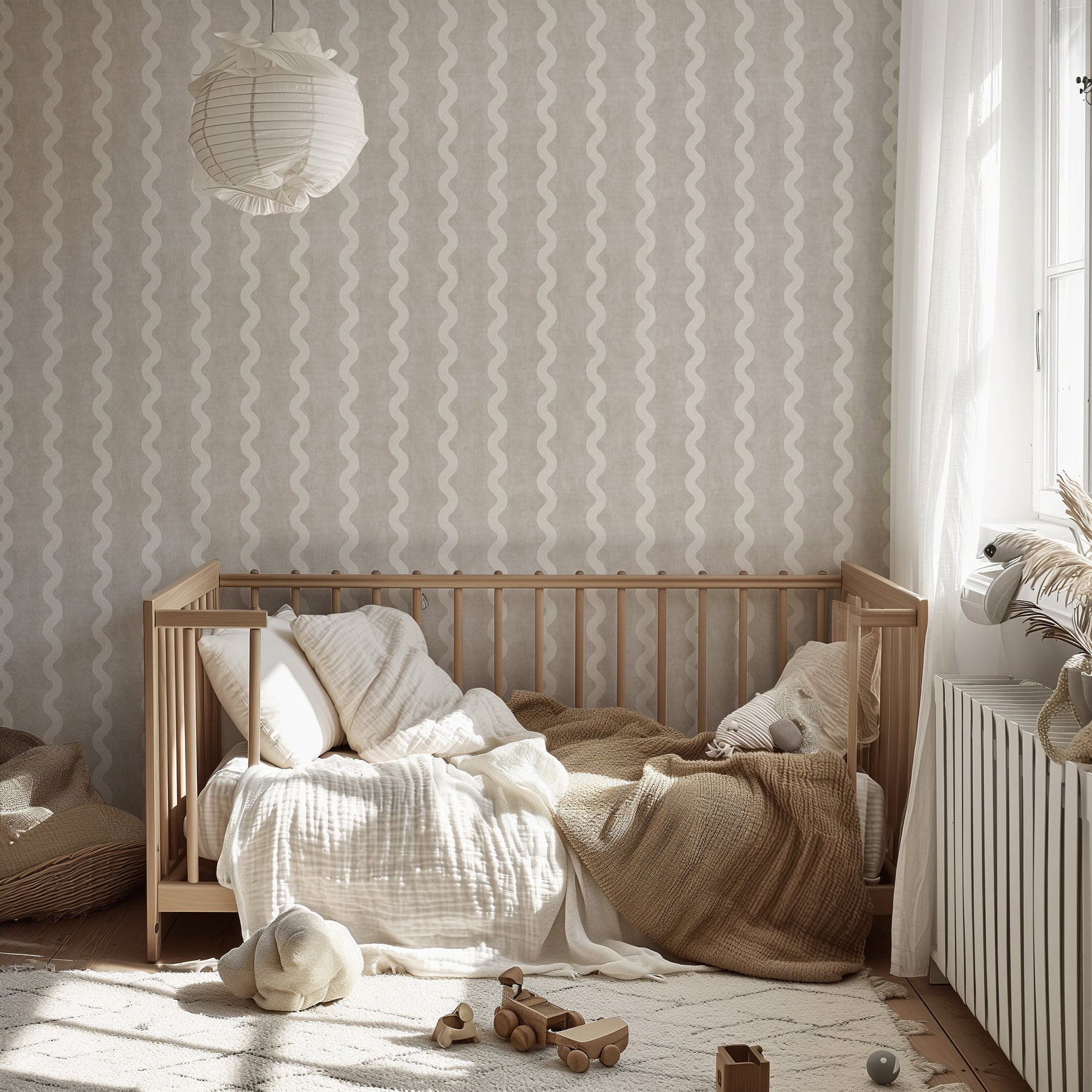 A refined wave stripe pattern inspired by natural linen textures, designed to bring quiet movement and modern character to your walls. The soft vertical flow creates a minimalist yet bold statement that works beautifully in bedrooms, living spaces, nurseries, and contemporary interiors.