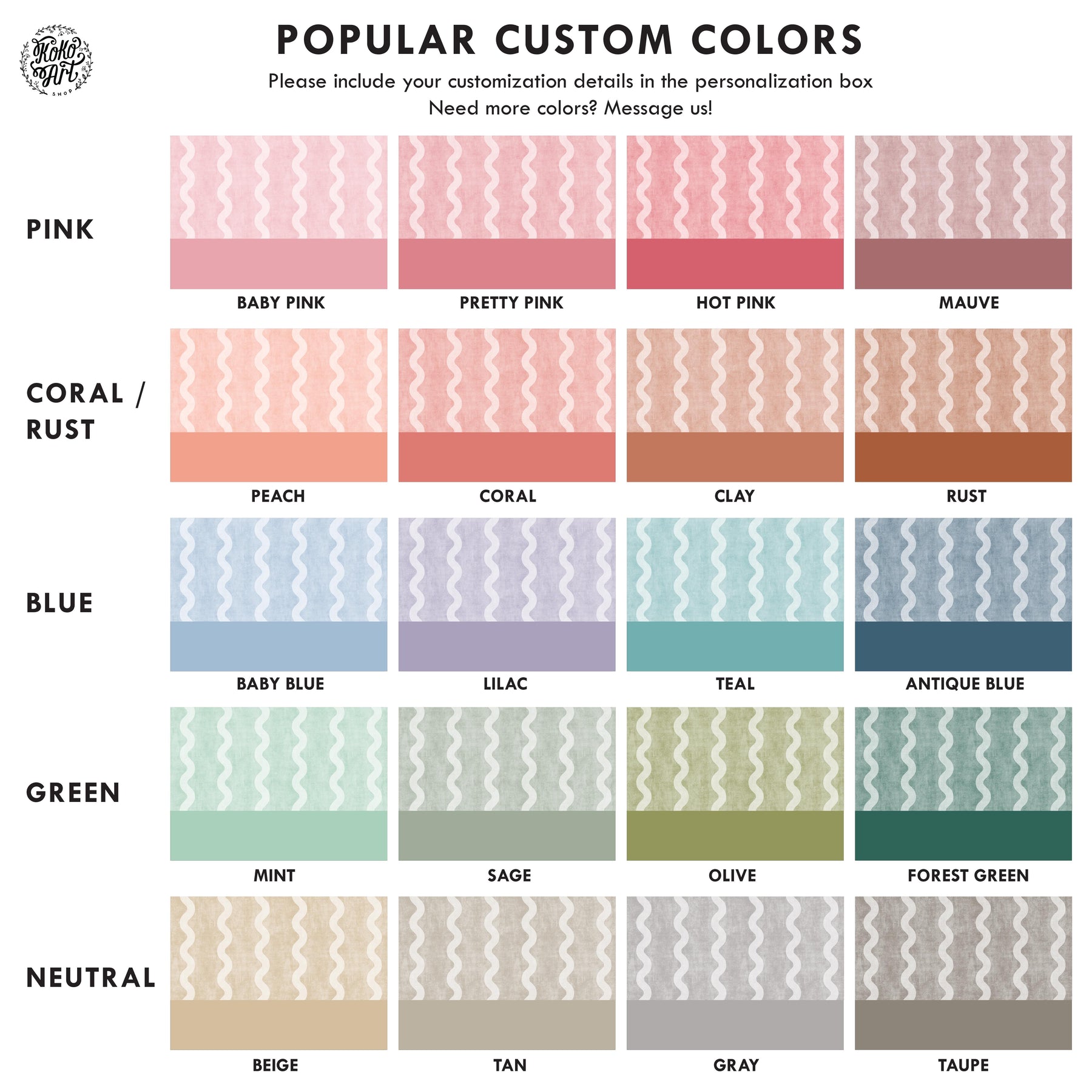 Colors can be customizable if desired. Simply request them in the Personalization optional box.