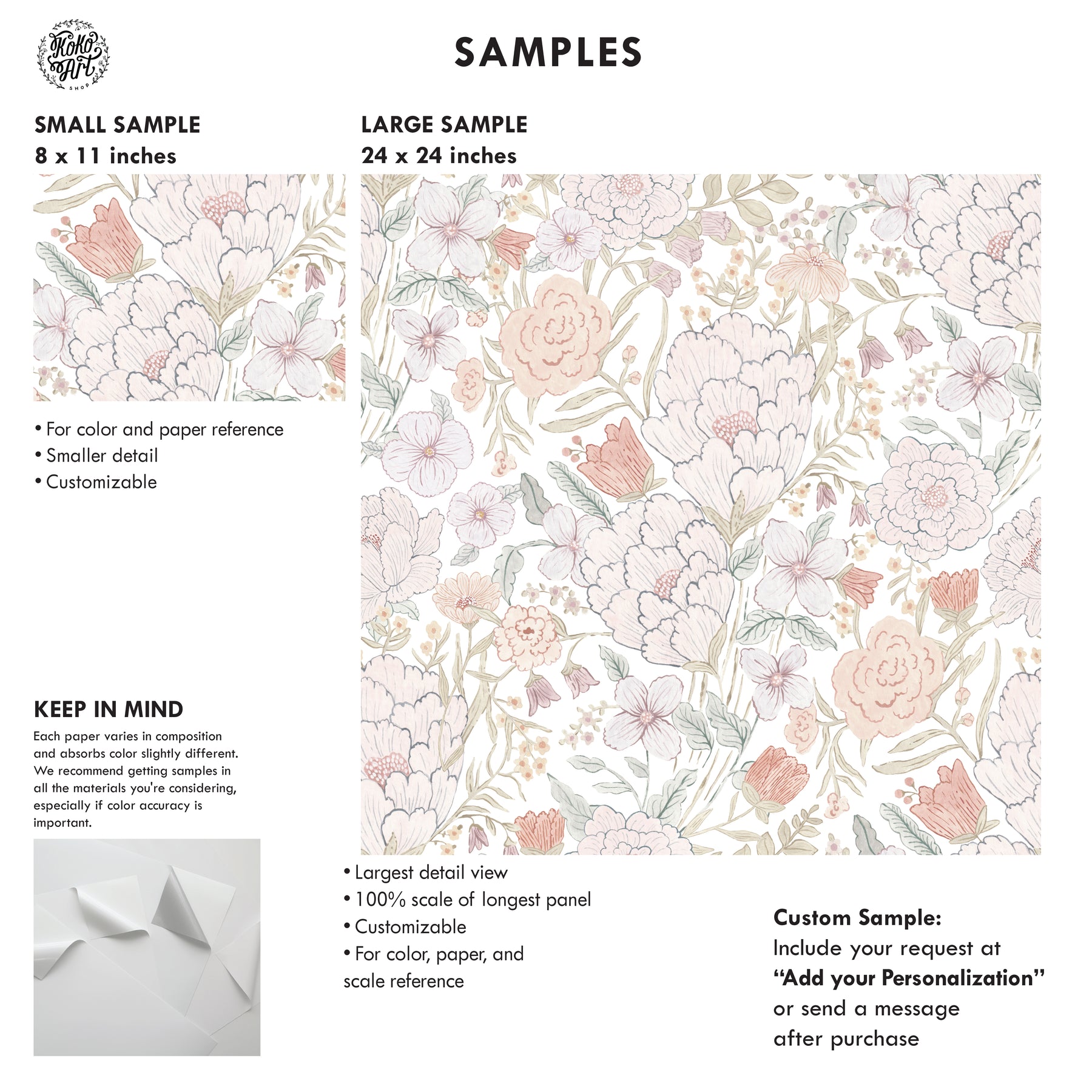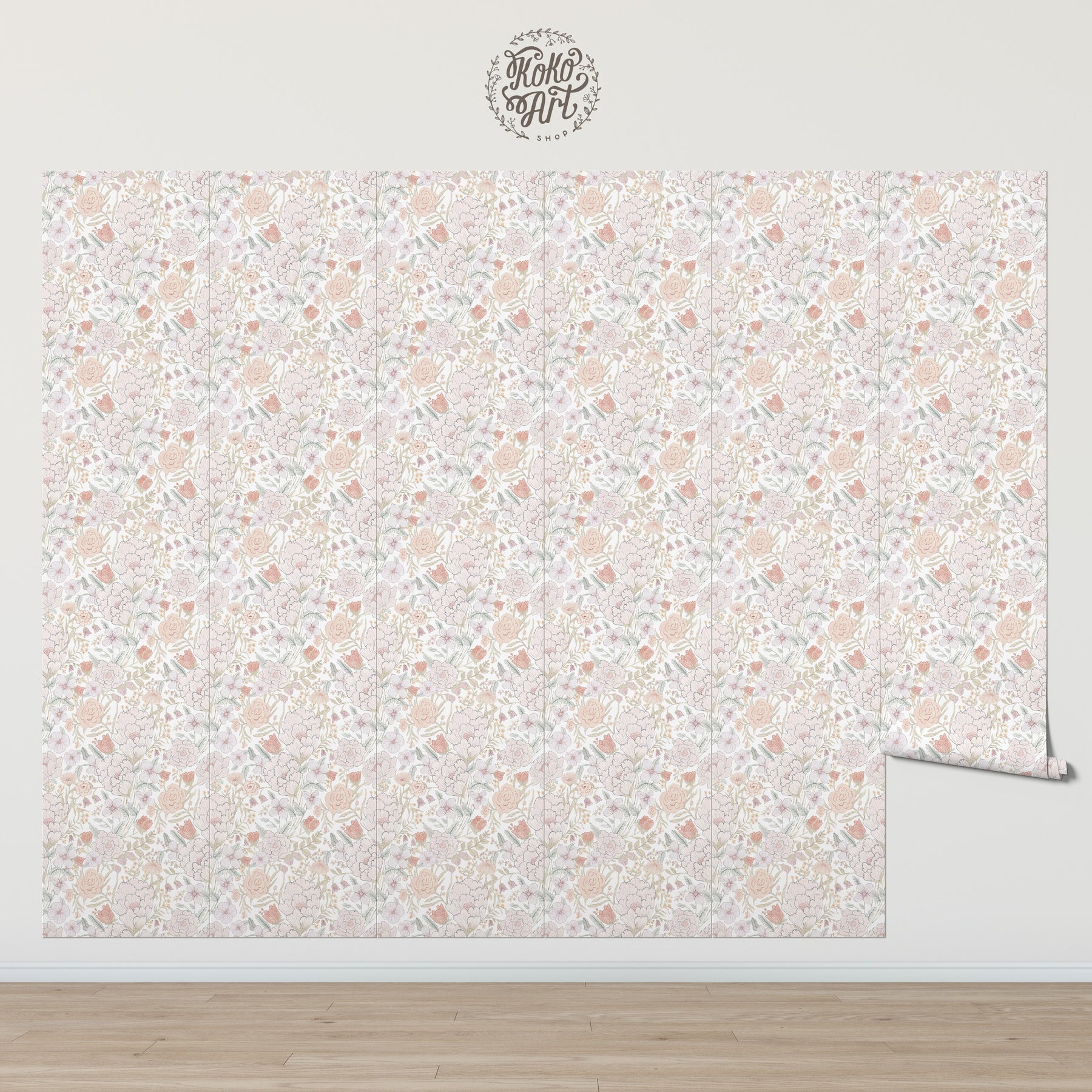 Transform your space into a romantic meadow with our exclusive wallpaper. Delicate flowers in soft pastel colors float over a crisp white background, creating a dreamy and elegant atmosphere.