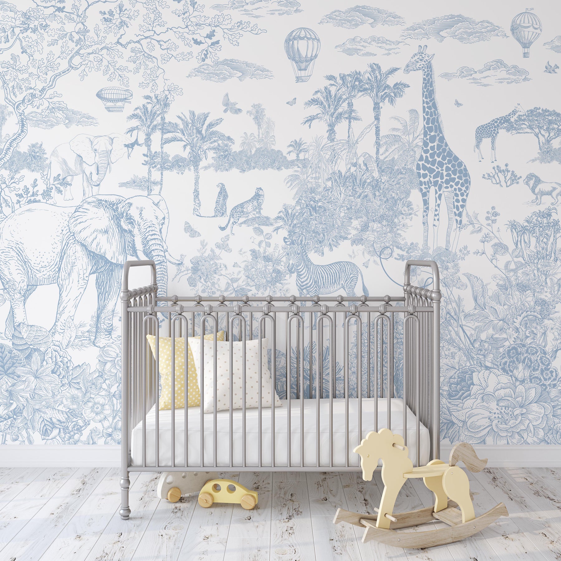 This classic design is available in multiple color options and can be customized to fit most wall sizes. Perfect for nurseries, playrooms, or any space in need of a little wild wonder for both boys and girls!