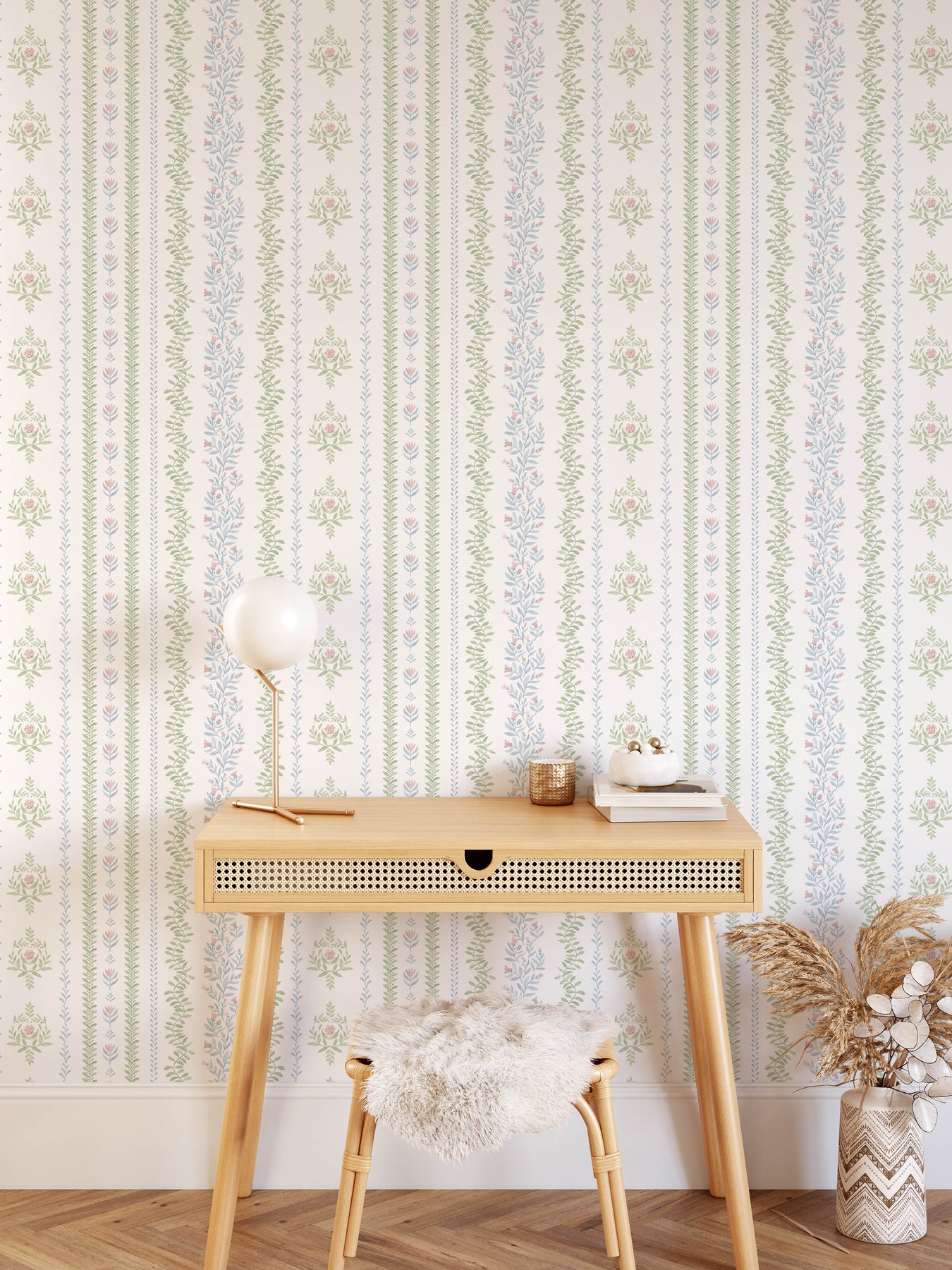 Bring elegance and charm into your space with the Bloom Rhythm Stripe Wallpaper. Its graceful pattern pairs delicate floral motifs with subtle stripes, creating a soothing, sweet ambiance. This refined design adds a touch of timeless beauty to any room, making it perfect for enhancing comfort and warmth in your home.