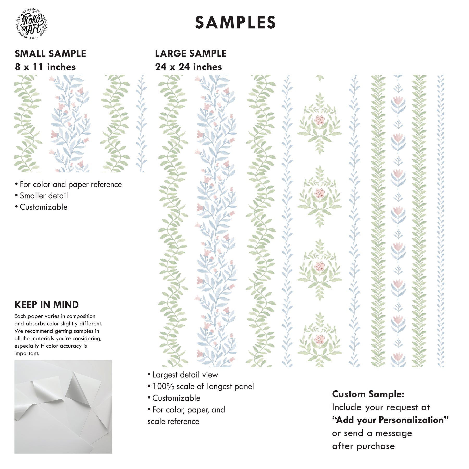• Order enough material to complete your project, there might be slight color differences between paper lots.
