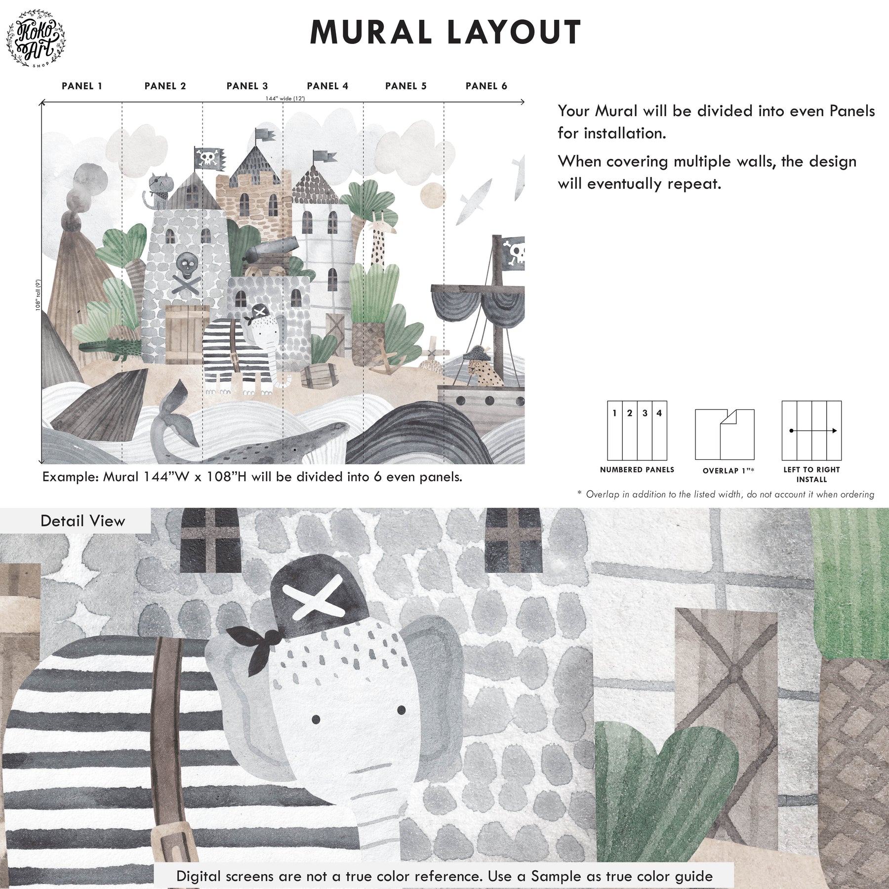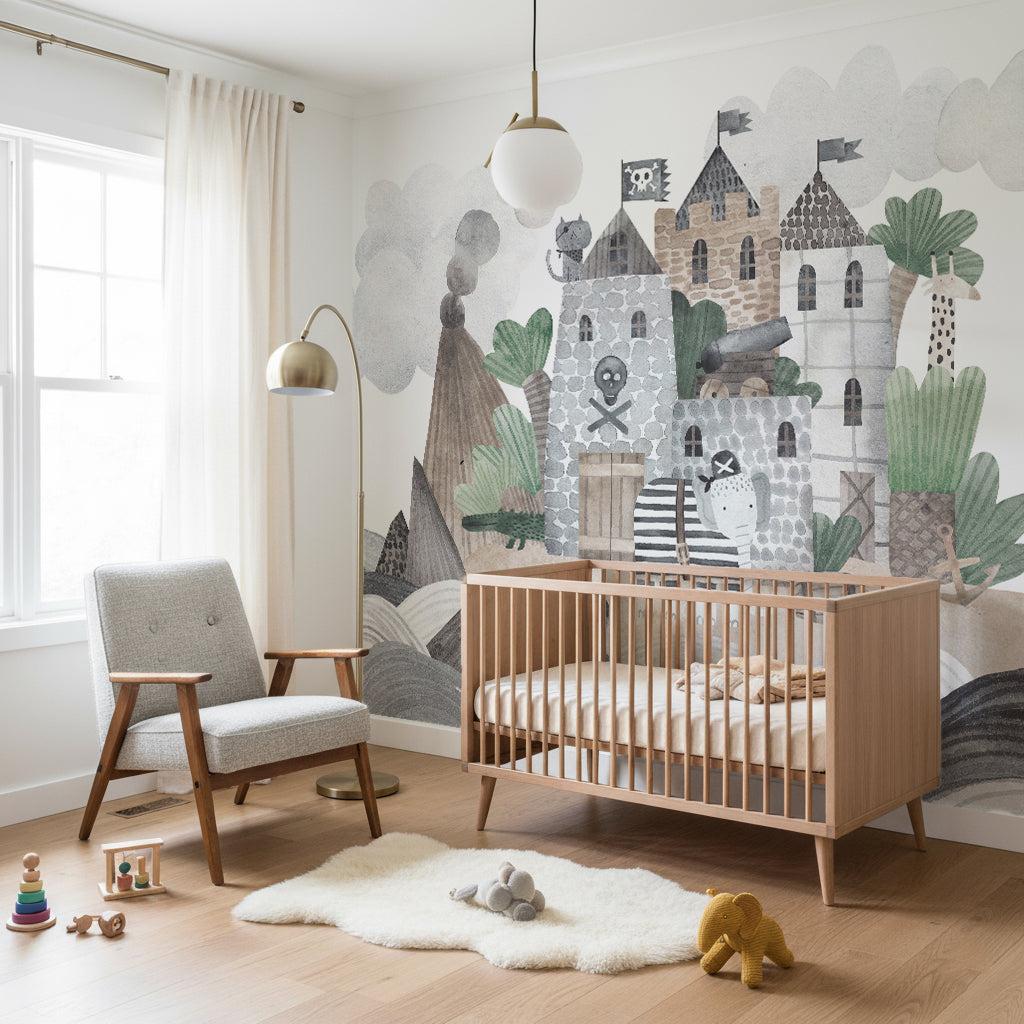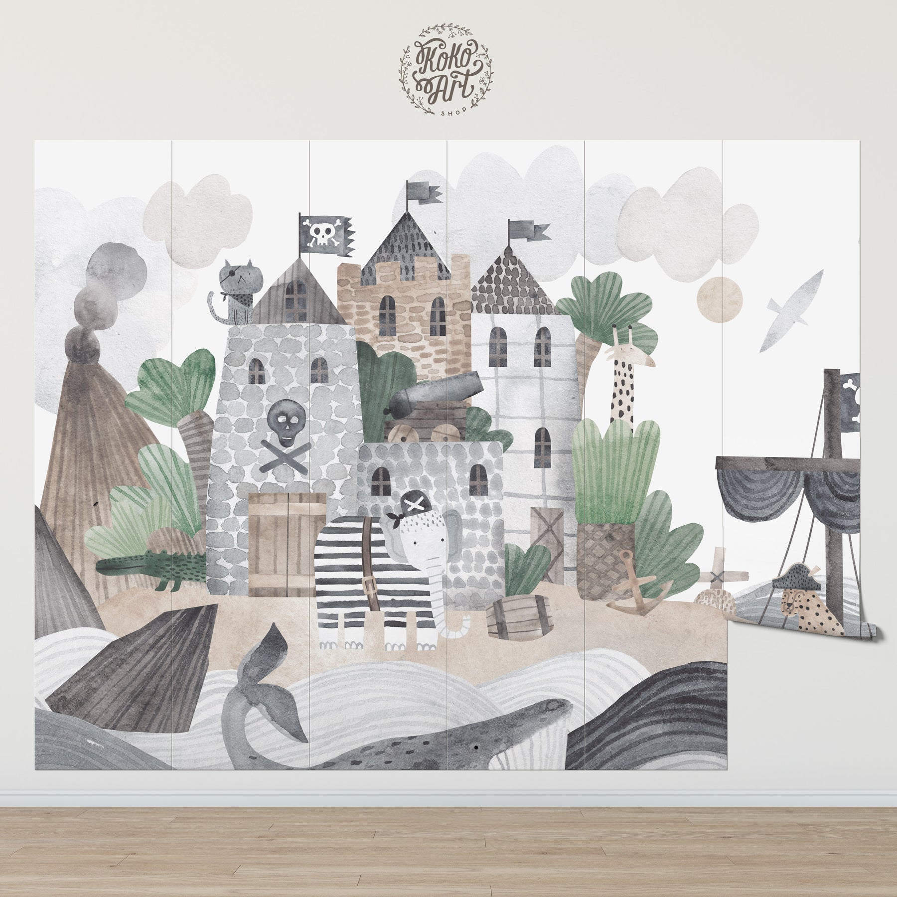 Hoist the sails and set off on an epic adventure! This pirate mural bursts with playful sea creatures and daring exploration, inspiring young buccaneers to embrace courage and curiosity. Perfect for kids ready to grow beyond the nursery, it captures the thrill of discovery with charming animal companions navigating the high seas. Transform any room into a swashbuckling hideaway where imagination rules the waves.