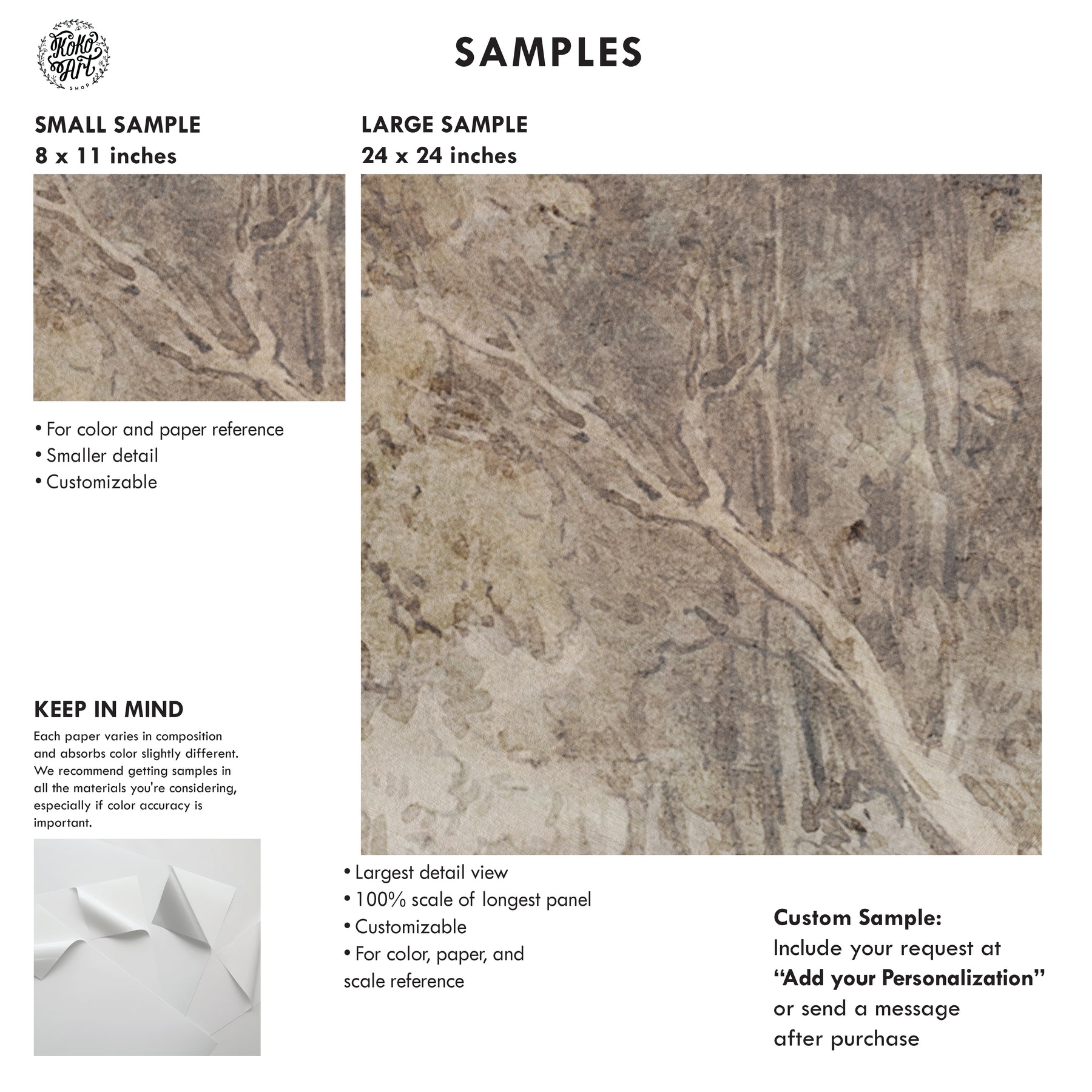 Order samples before committing — they include a full-scale swatch and design preview. Each material absorbs color differently once printed. We recommend getting samples in all materials you're considering, especially if color accuracy is important.