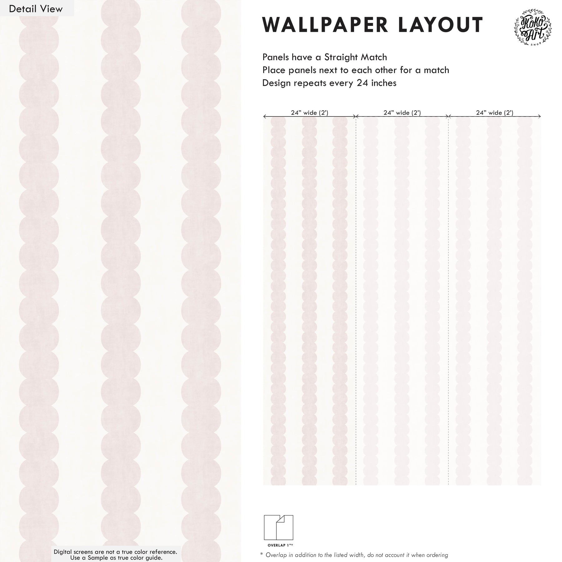 - This design has a straight match, and repeats every 24 inches.