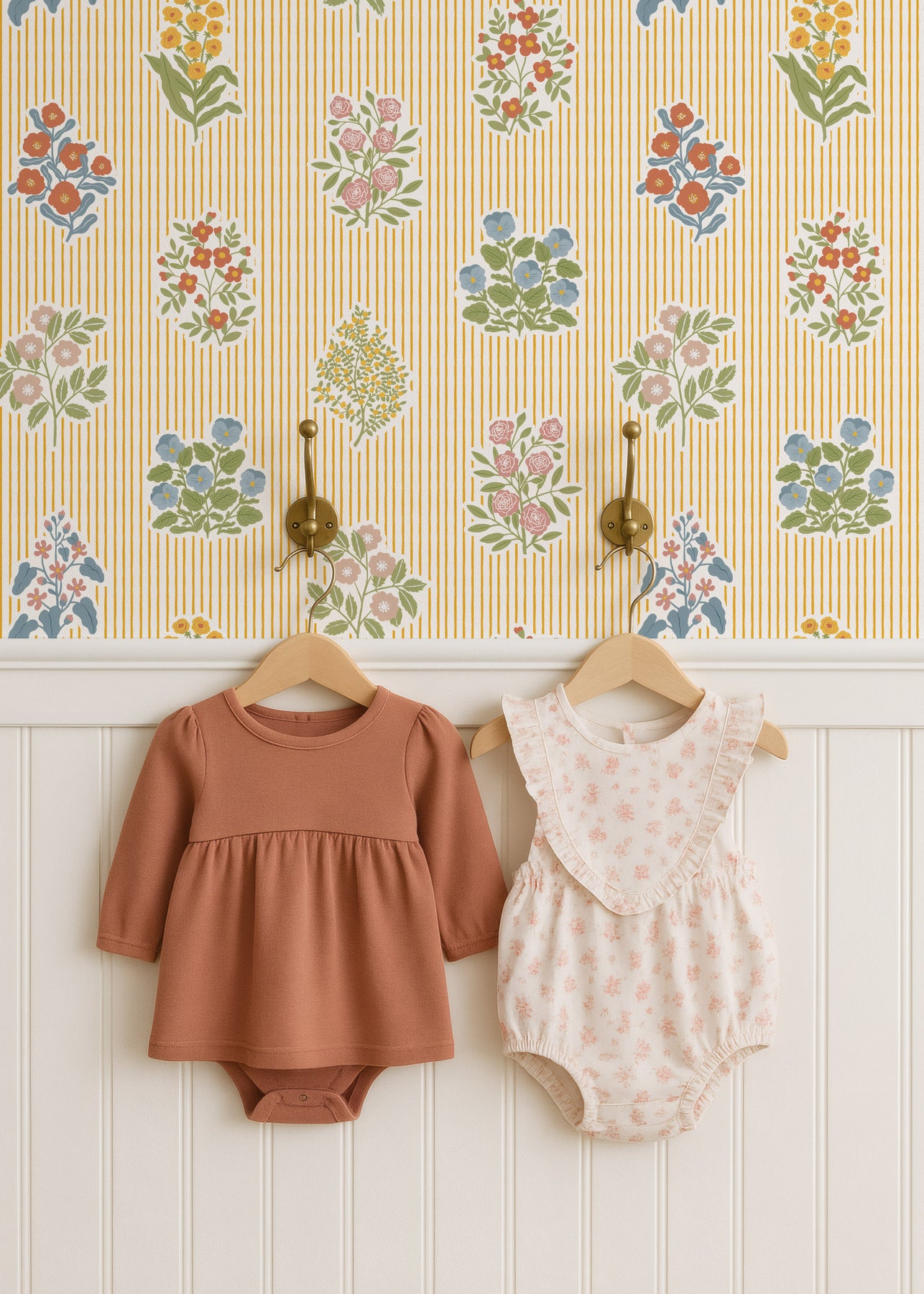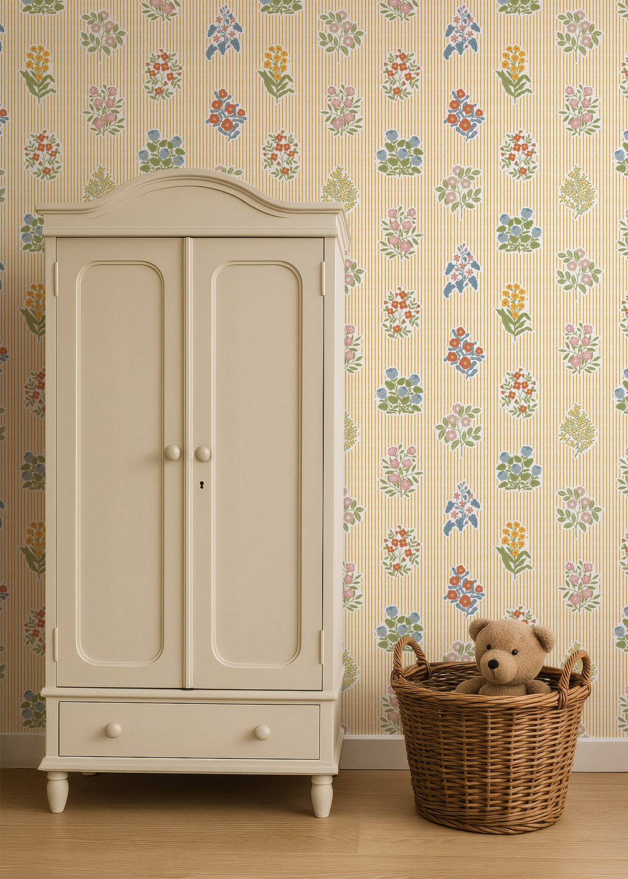 The magic is in your control: customize both the background and stripe colors to align with your vision, and adjust the floral palette however you wish. Soften delicate blooms, lighten for an airy feel, shift saturation for depth, or tone colors to match your décor perfectly. Design a wallpaper that's authentically, beautifully yours.