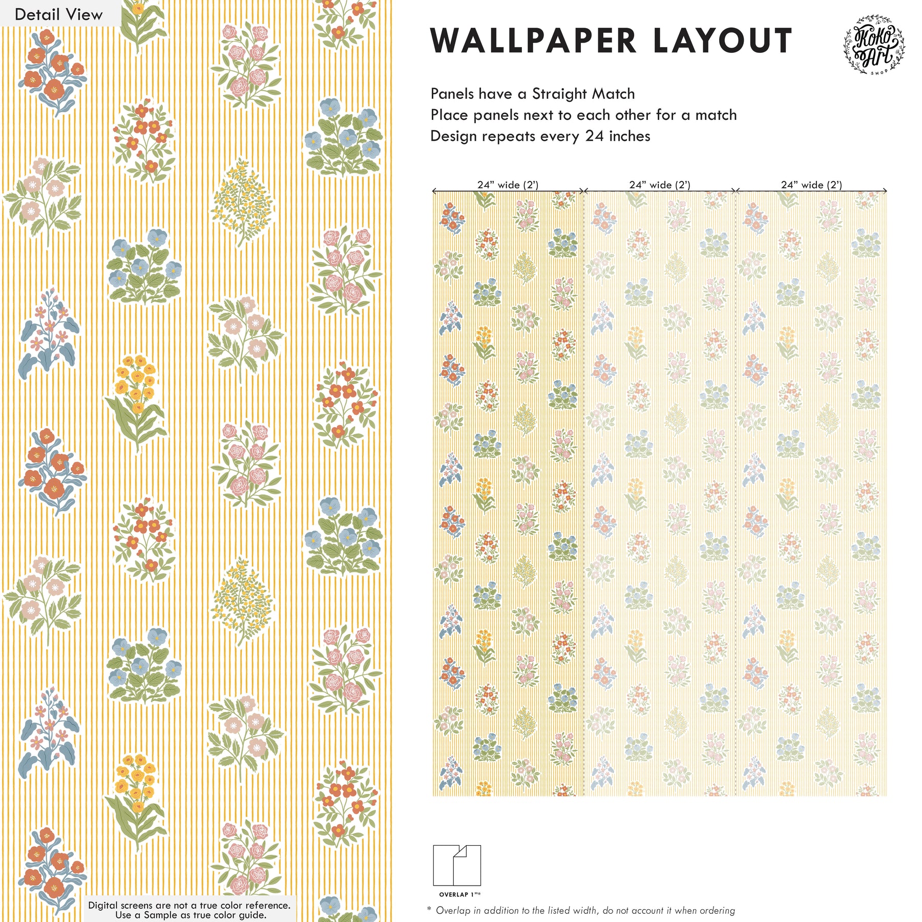- This design has a straight match, and repeats every 24 inches.