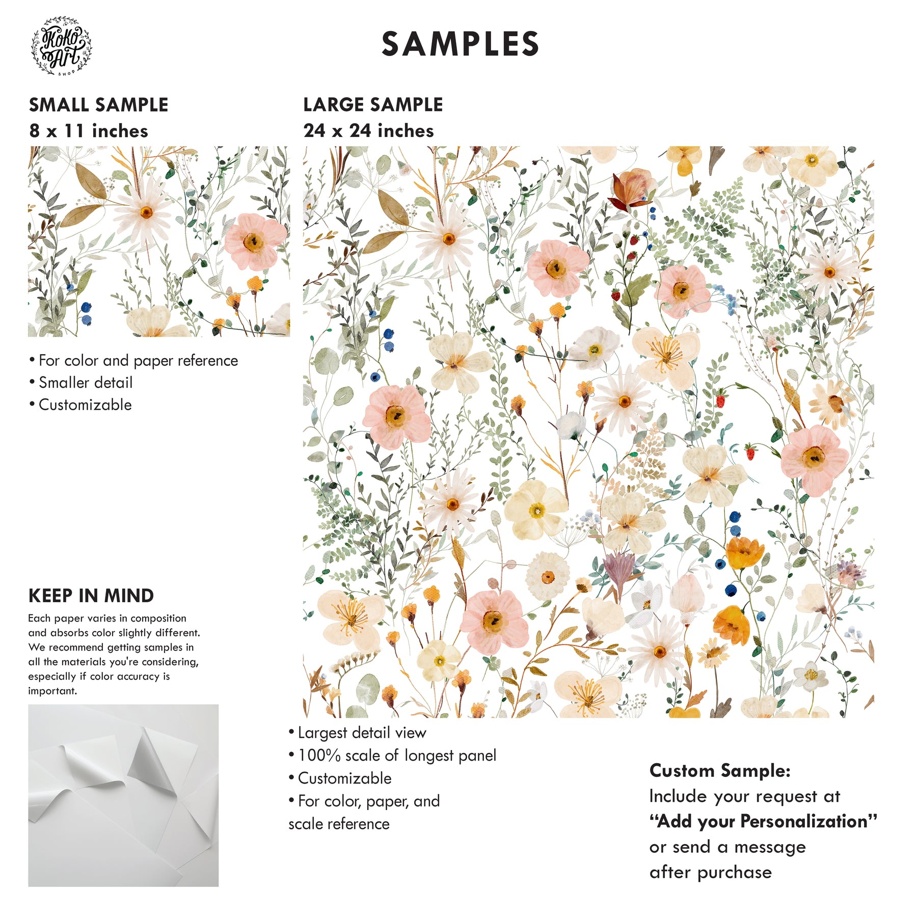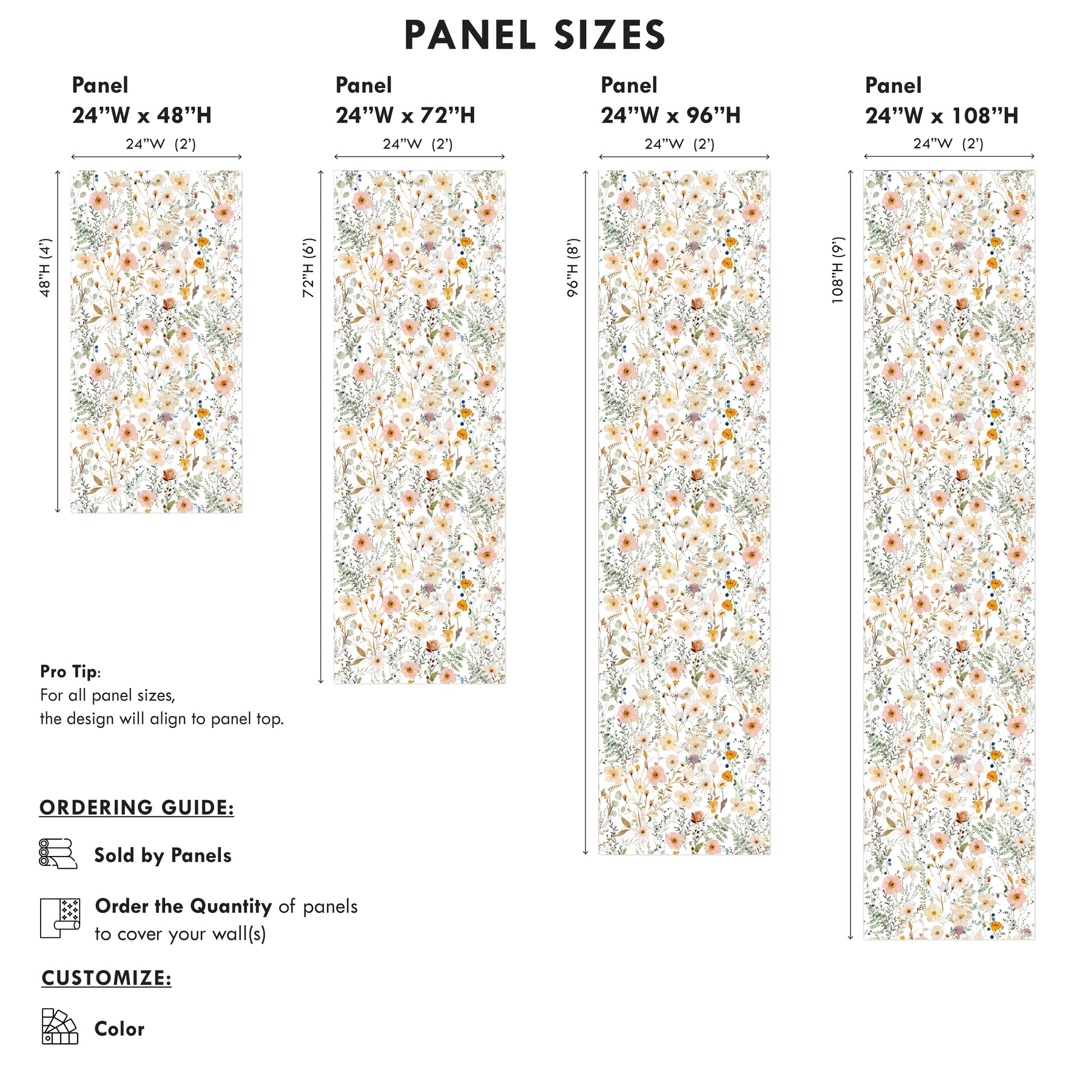 Avery es encantadora y delicada, llena de detalles, como un jardín salvaje. Con hermosos tonos apagados para resaltar un rubor suave y vibraciones neutras. Luce increíble en espacios grandes o pequeños. Intente utilizar paredes adyacentes en blanco, rosa o tonos neutros para que este diseño luzca lo mejor posible.